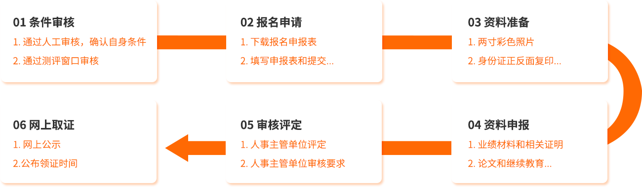 1. 本科畢業或學士學位:取得中級工程師后,從事專業技術工作滿5年